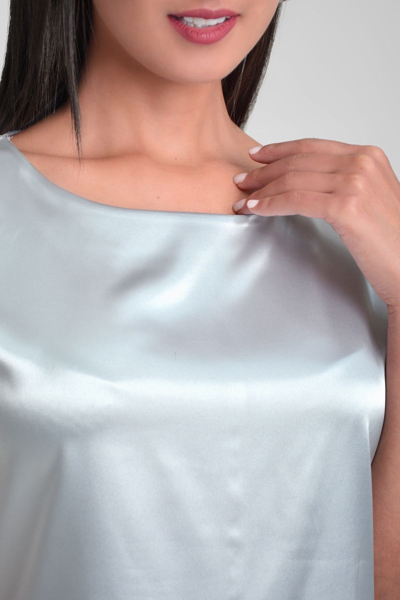 Blusa mujer esencial silueta fluida escote redondo de manga seguida en satín