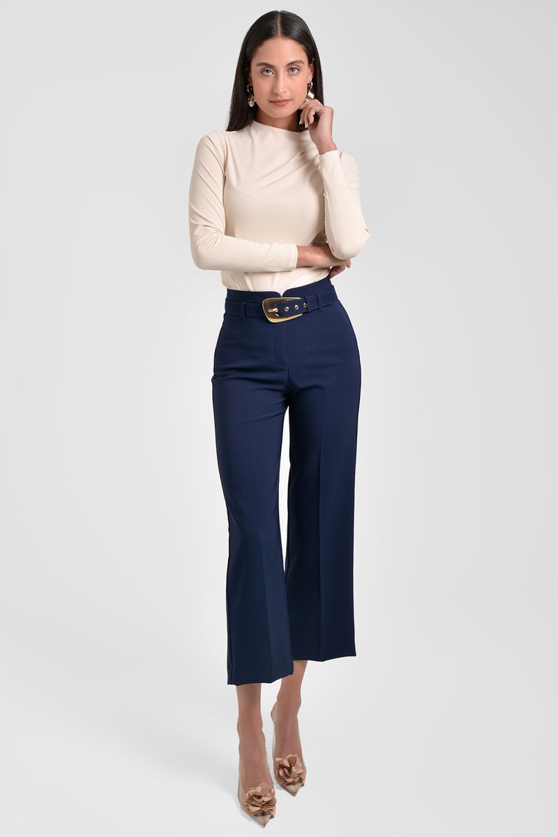 PANTALÓN MUJER CON CINTURÓN COLOR AZUL NAVY TALLA 6