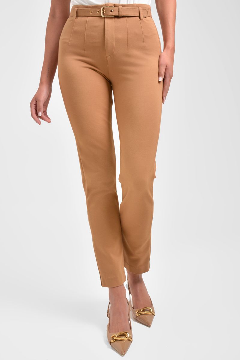 Pantalón para mujer, en puntiroma, horma clasica y bota tipo pescador. Con cinturón forrado y hebilla.